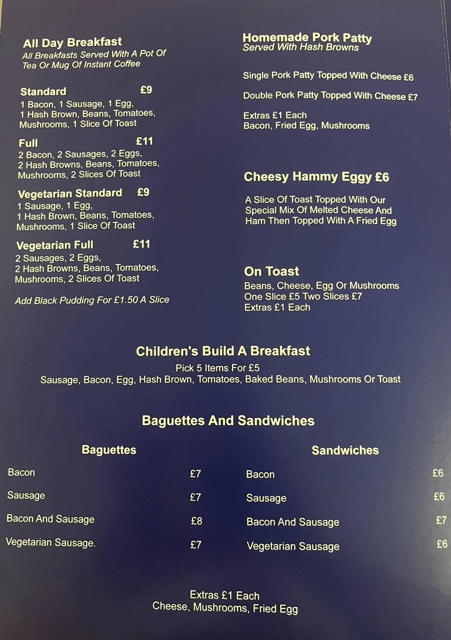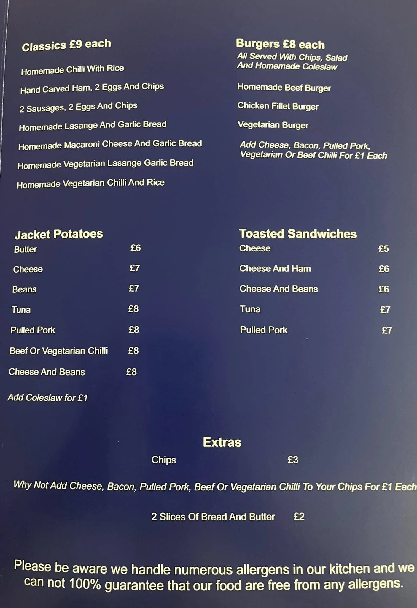 The Mariner’s Galley Cafe Menu