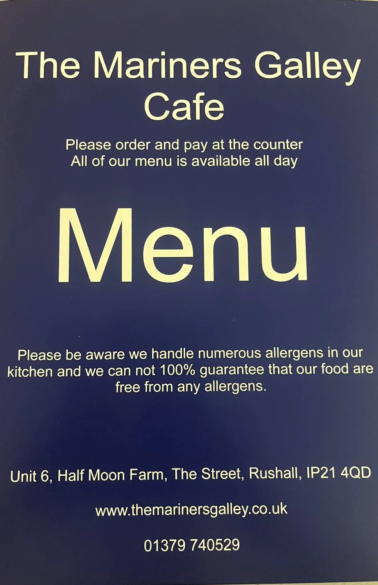 The Mariner’s Galley Cafe & Bistro is situated on the Norfolk / Suffolk border in the small village of Rushall just off the A140. A traditional countryside cafe and bistro that offers a large menu including our all day breakfasts, snacks, homemade daily specials and cakes. All of our dishes are prepared fresh to order and made with the best quality local produce where possible. We offer a warm, friendly and fun place for guests to relax, eat and enjoy.
